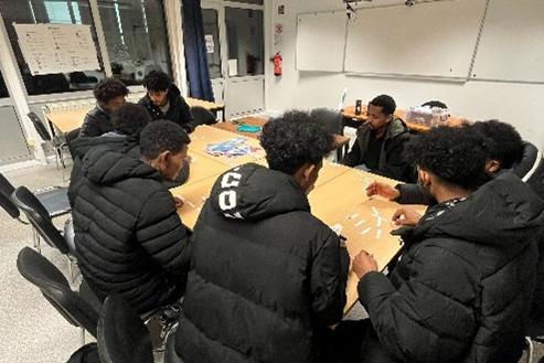 In de refter en klaslokalen schuiven grofweg honderd anderstaligen aan bij een vrijwilliger naargelang hun taalniveau. “De vijftien vrijwilligers modereren en stimuleren het gesprek door interessante vragen te stellen, taalspelletjes voor te bereiden en een gezonde dosis nieuwsgierigheid in te brengen”, vertelt medewerkster Leen Gaublomme. Ze haalt enkele klassieke gespreksstarters aan: “Wat heb je deze ochtend gegeten? Kun je jouw buur uitleggen wat er op deze afbeelding staat? Wat zijn jouw grootste dromen?”
